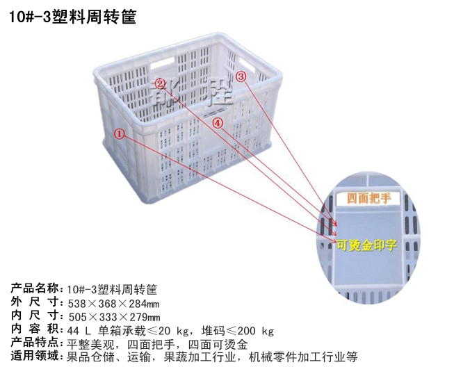 | 產品名稱: | 10號-3塑料周轉筐 | 產品型號: | |
